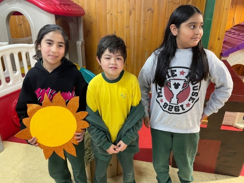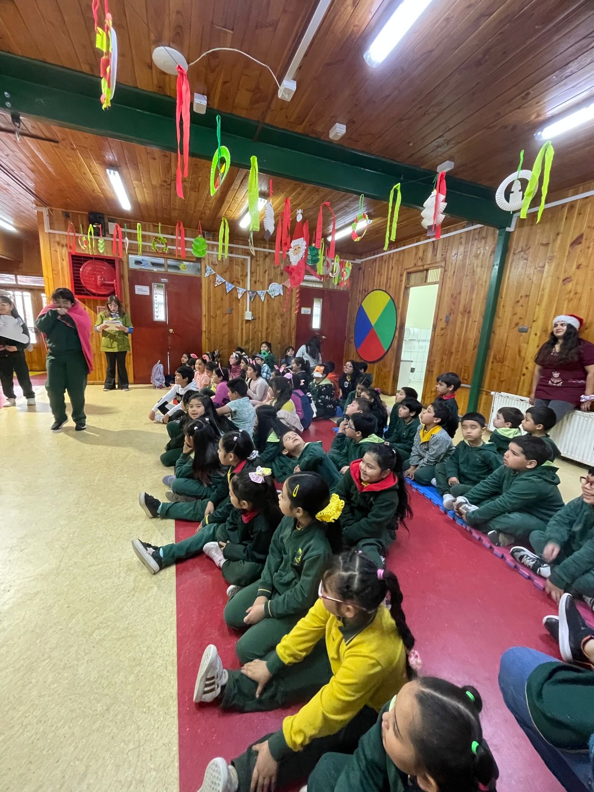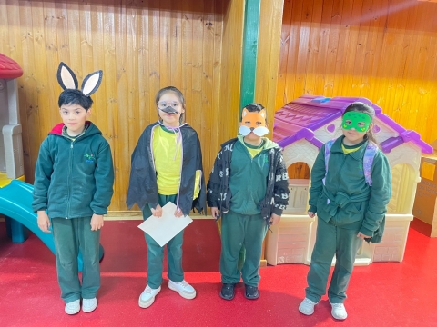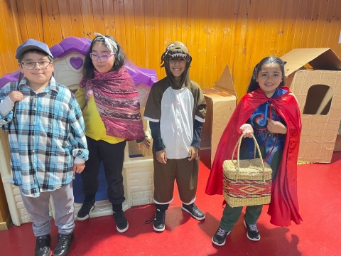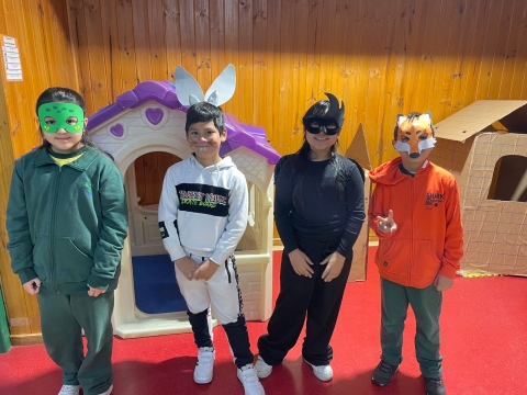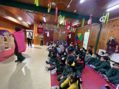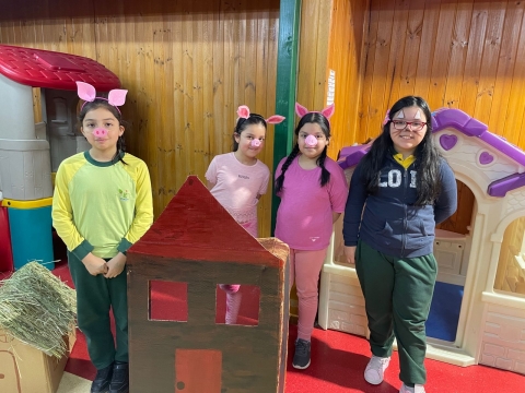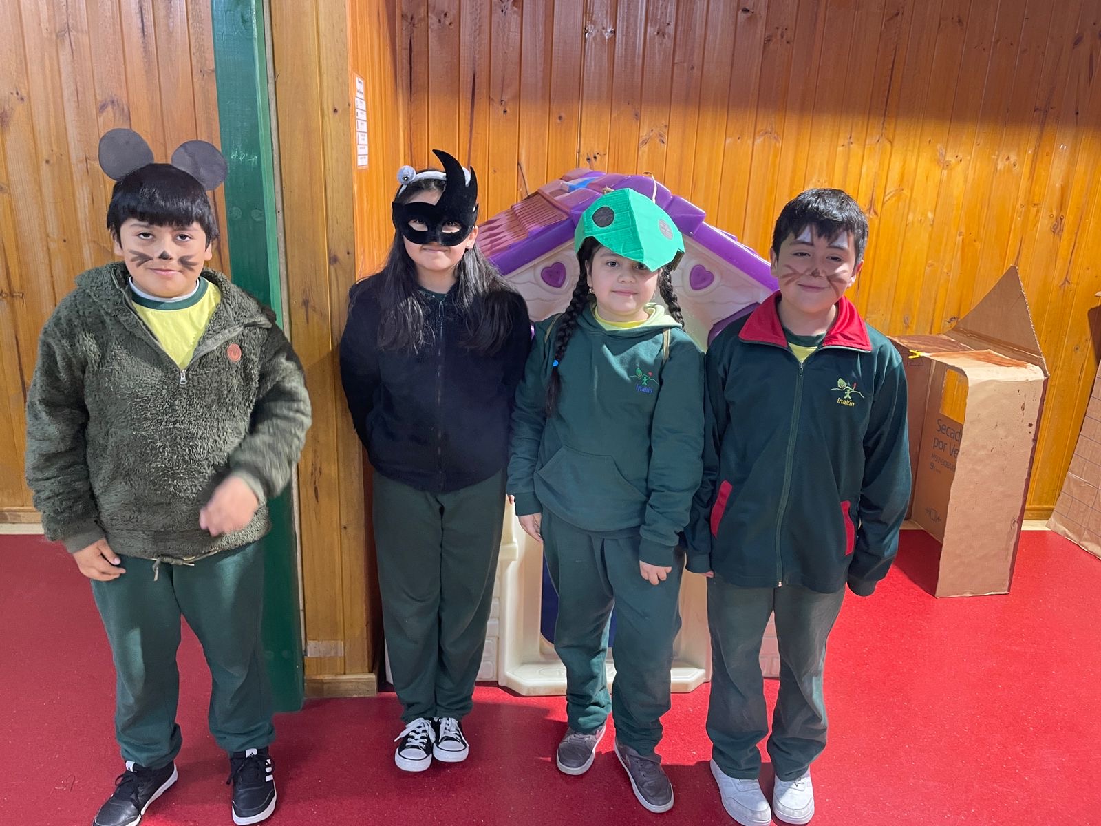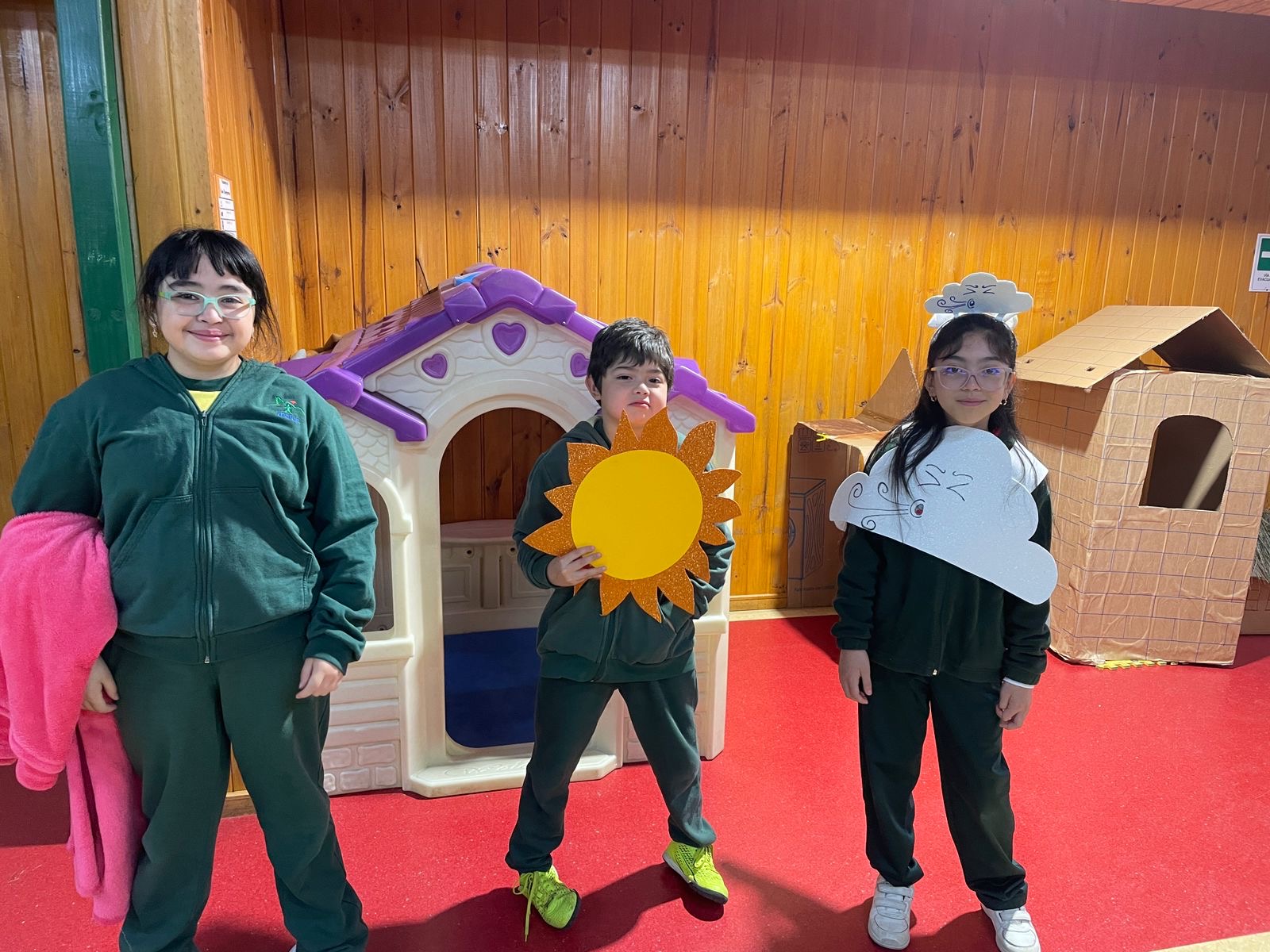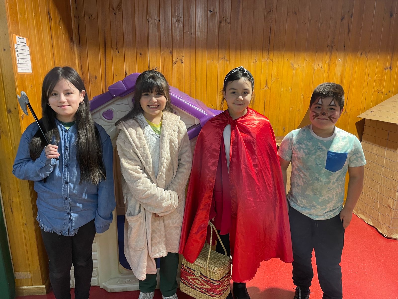 “Estudiantes de tercero básico presentan con entusiasmo sus obras de teatro, cautivando a los niños y niñas de kínder, quienes disfrutaron una experiencia única de aprendizaje, creatividad y compañerismo en un ambiente lleno de aplausos y alegría.”