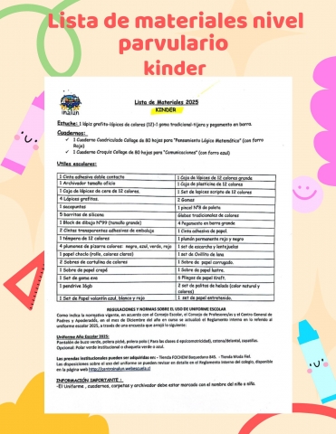 Compartimos con ustedes Lista de materiales nivel Parvulario y Básica: año 2025.
