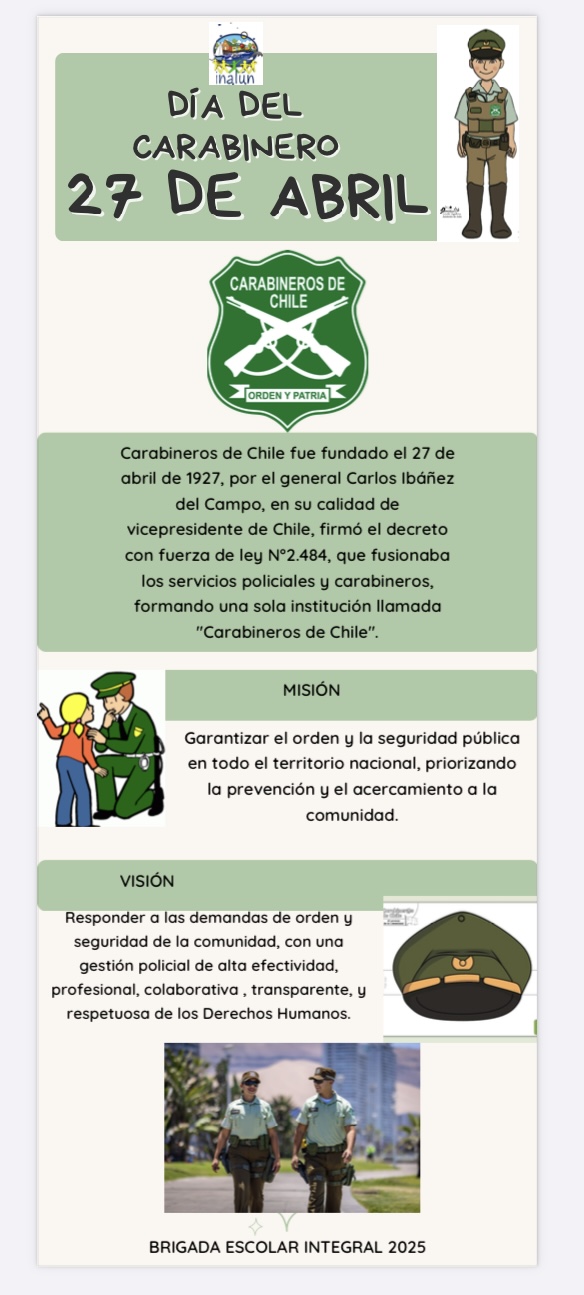 El Día del Carabinero nos permite reconocer y valorar el trabajo de quienes dedican su vida a proteger a los ciudadanos y ciudadanas de Chile. En Chile cada 27 de abril se conmemora la creación de la policía uniformada más antigua de América Latina. Este día es una oportunidad para reconocer y agradecer el trabajo de los Carabineros, quienes velan por la seguridad y protección de la ciudadanía. La labor de los Carabineros es fundamental para la sociedad chilena, ya que no solo se encargan de mantener el orden y la seguridad pública, sino que también contribuyen al desarrollo de diversas actividades comunitarias y de ayuda social. Ellos son un pilar fundamental en la prevención del delito y en la respuesta inmediata ante emergencias y situaciones de crisis. Es importante destacar que el trabajo de los Carabineros debe ir siempre de la mano con el respeto a los derechos humanos y la protección de las personas, sin importar su origen, género, orientación sexual, etnia, religión u otra condición.