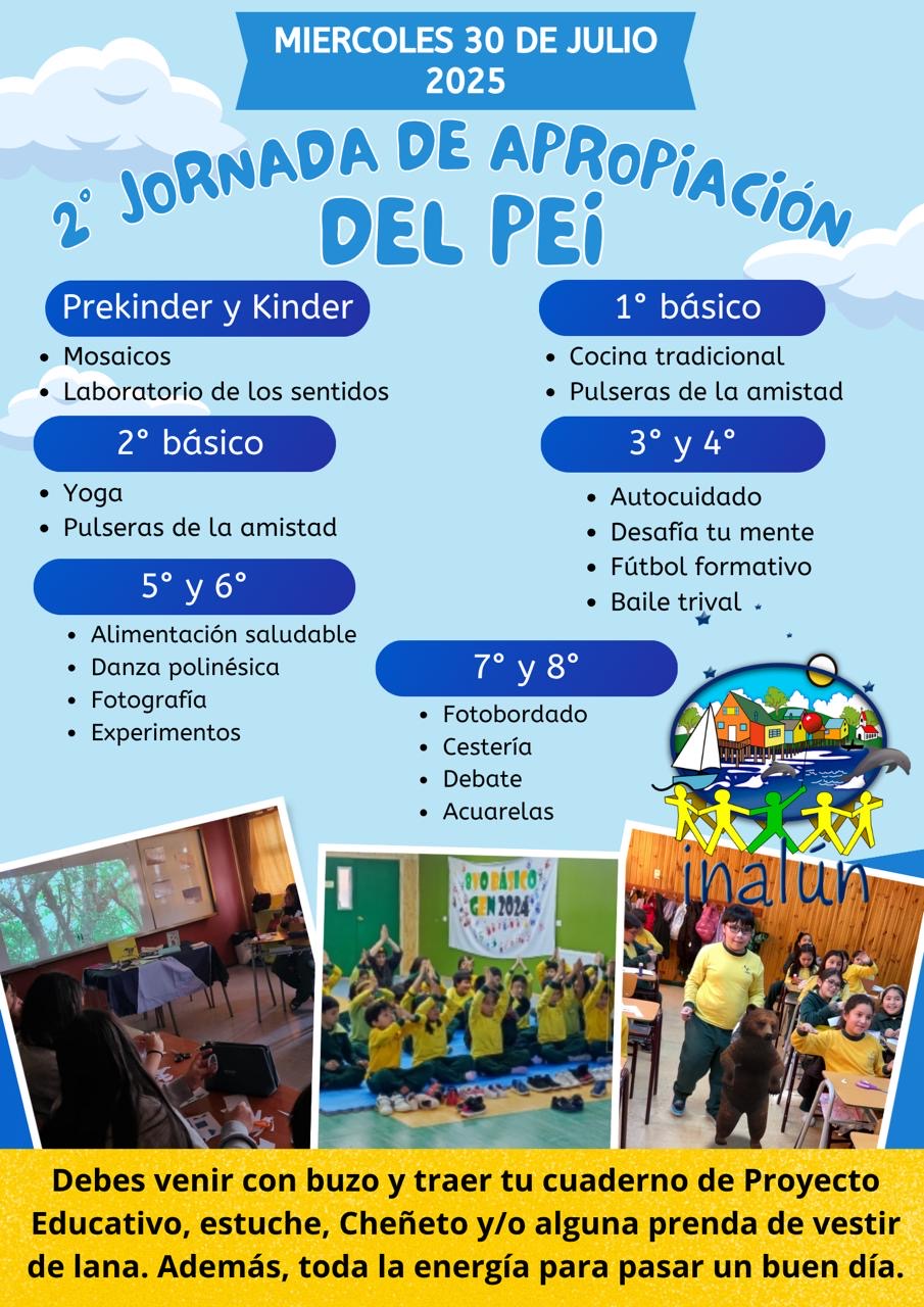 Los invitamos a la segunda Jornada de apropiación del Proyecto Educativo Institucional (PEI) a realizarse el miércoles 30 de julio desde las 08:00 hrs.