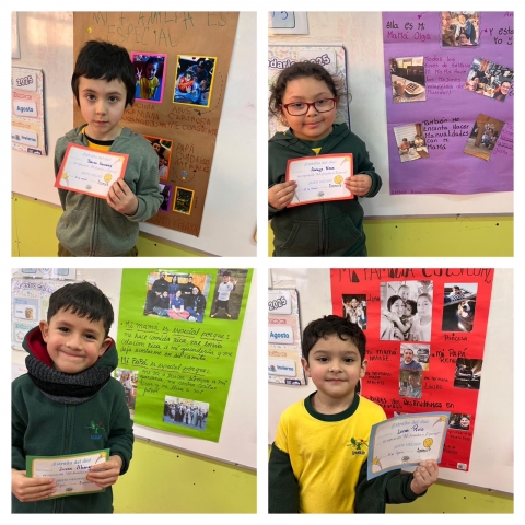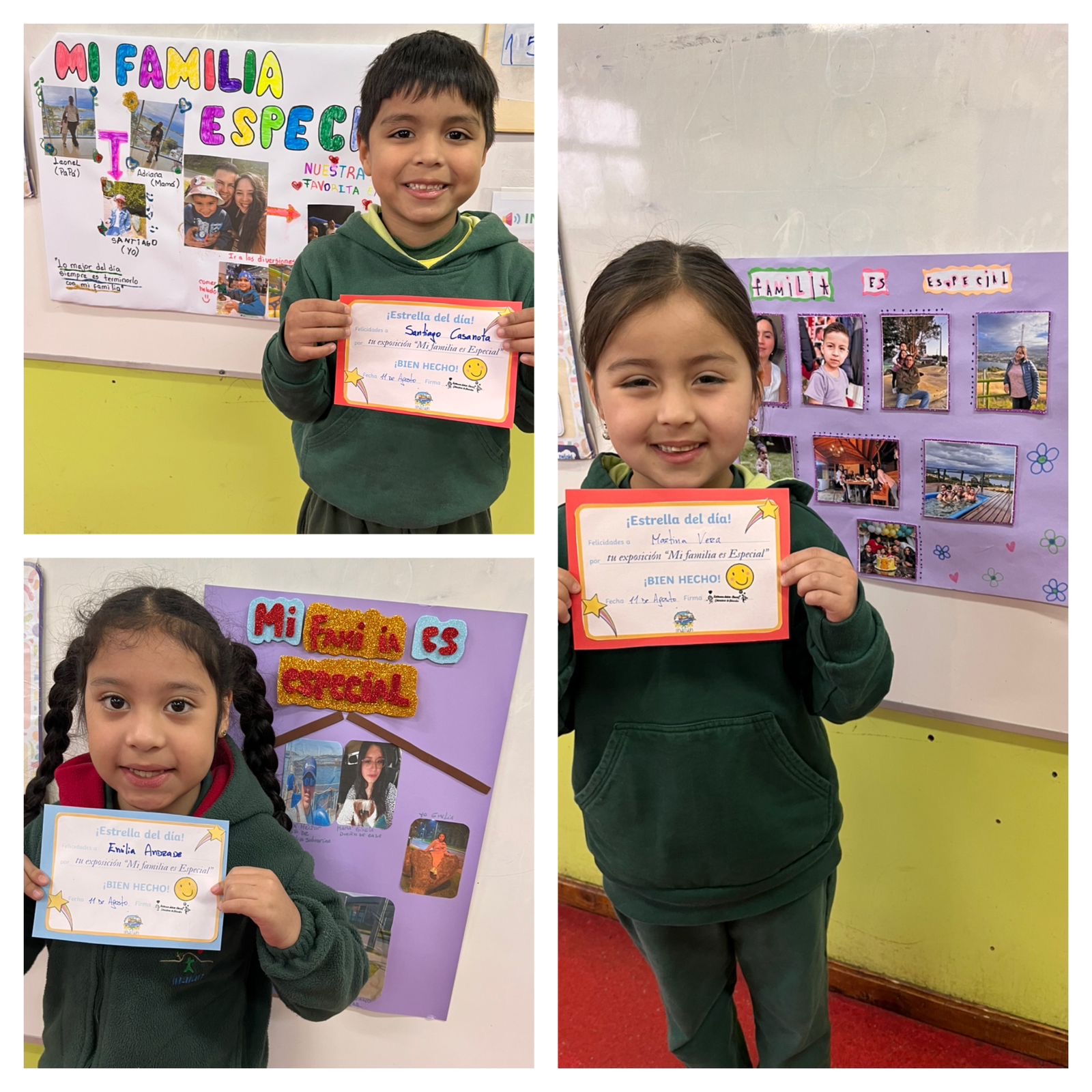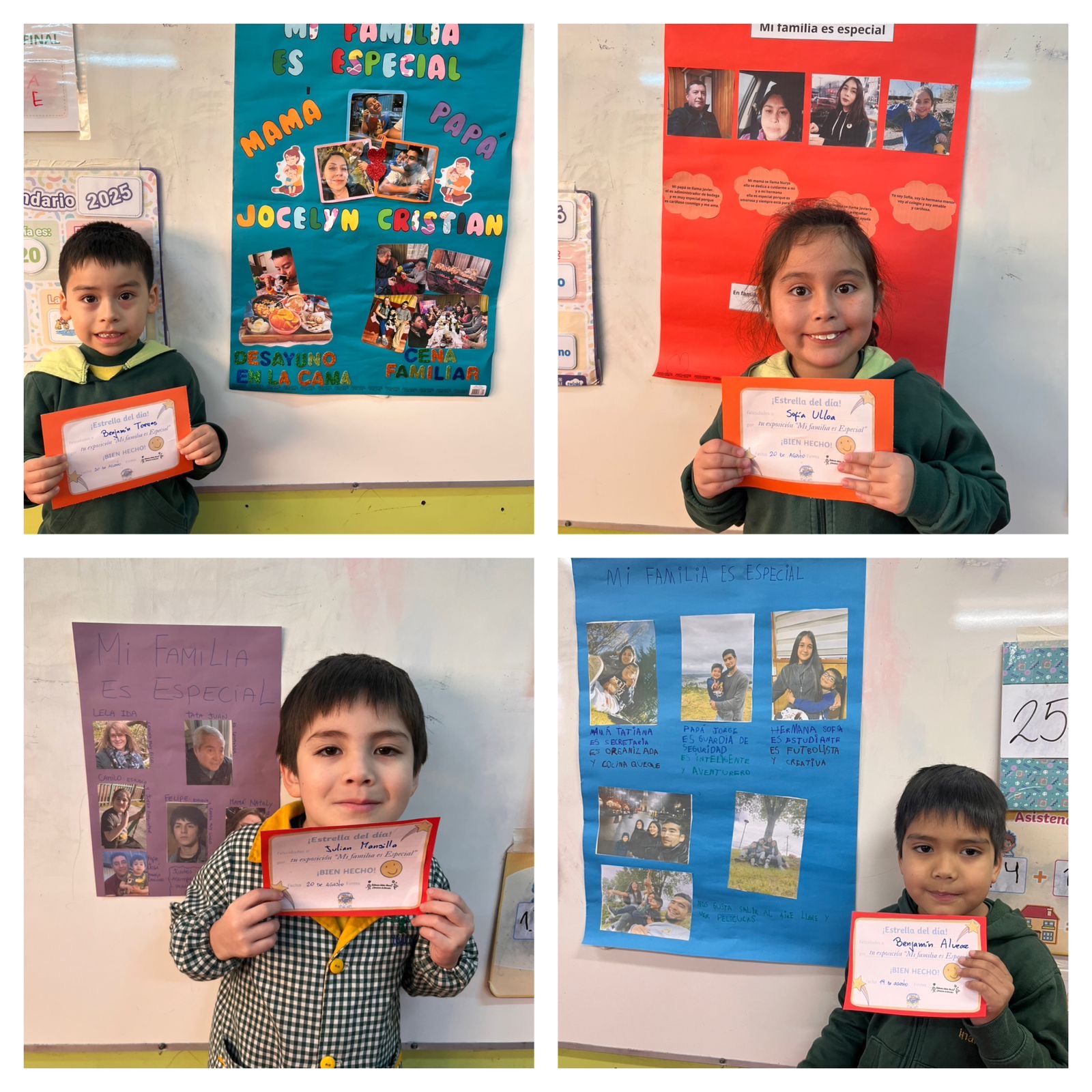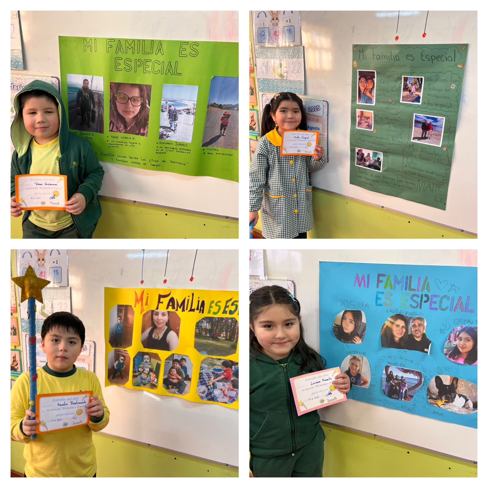 Las y los estudiantes de Kinder, durante el mes de agosto, expusieron frente a sus pares una presentación titulada “Mi familia es especial”, donde presentaban a los integrantes de su familia, a que se dedican, y una cualidad de por qué son especial para ellos. Entre las cuales mencionaban que preparaban las comiditas más ricas, hacían los mejores asado, los amaban más que nadie, jugaban con ellos y los llevaban al colegio.