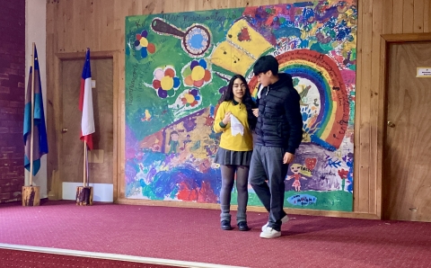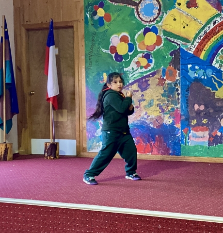 Dimos el inicio al "Mes de la Patria" con un pie de cueca a cargo de los estudiantes de octavo básico Vicente Millapani y Mayra Remolcoy