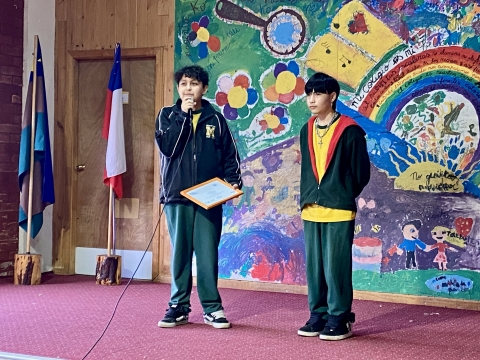 Como cada día lunes en nuestro colegio se realizó el acto cívico en donde se interpreta el Himno Nacional y de Chiloe. Ademas se dan a conocer las efemérides de la semana y se destaco a los y las estudiantes que han representado a nuestro colegio en distintas disciplinas.
