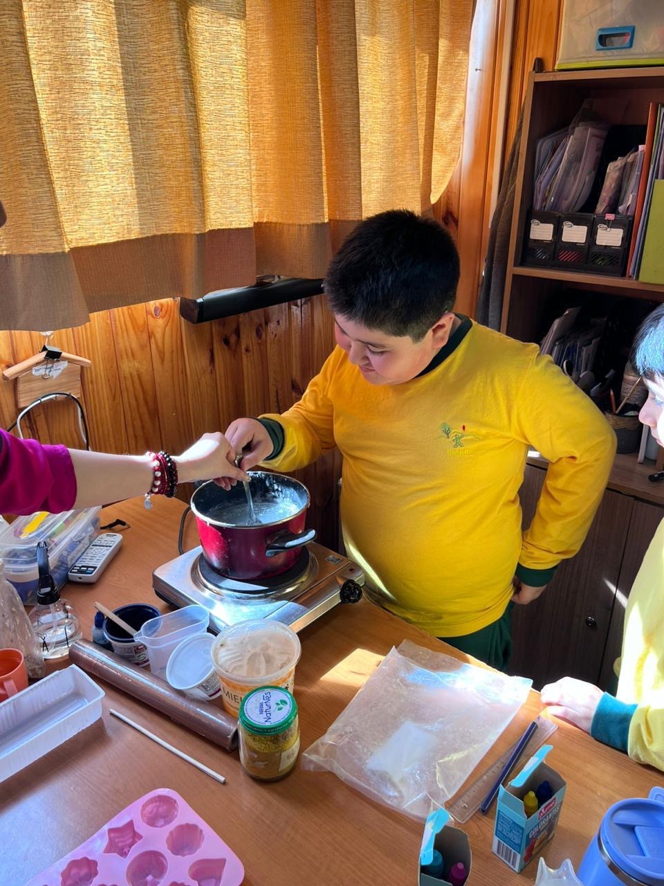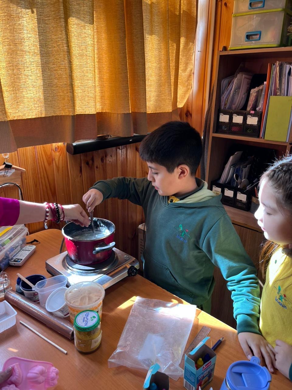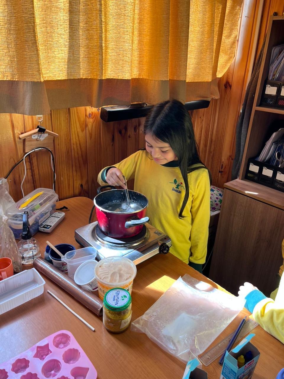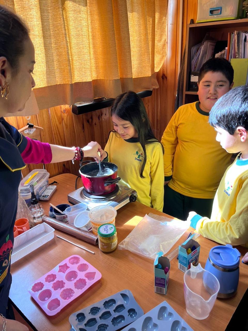 En el marco de esta unidad, realizaron una actividad especial en la que elaboraron jabones artesanales, siguiendo paso a paso instrucciones claras. Esta jornada fue guiada por la Sra. Esmeralda Oyarzo, apoderada del curso, quien con gran entusiasmo y dedicación enseñó a los y las estudiantes el proceso de creación de jabones.