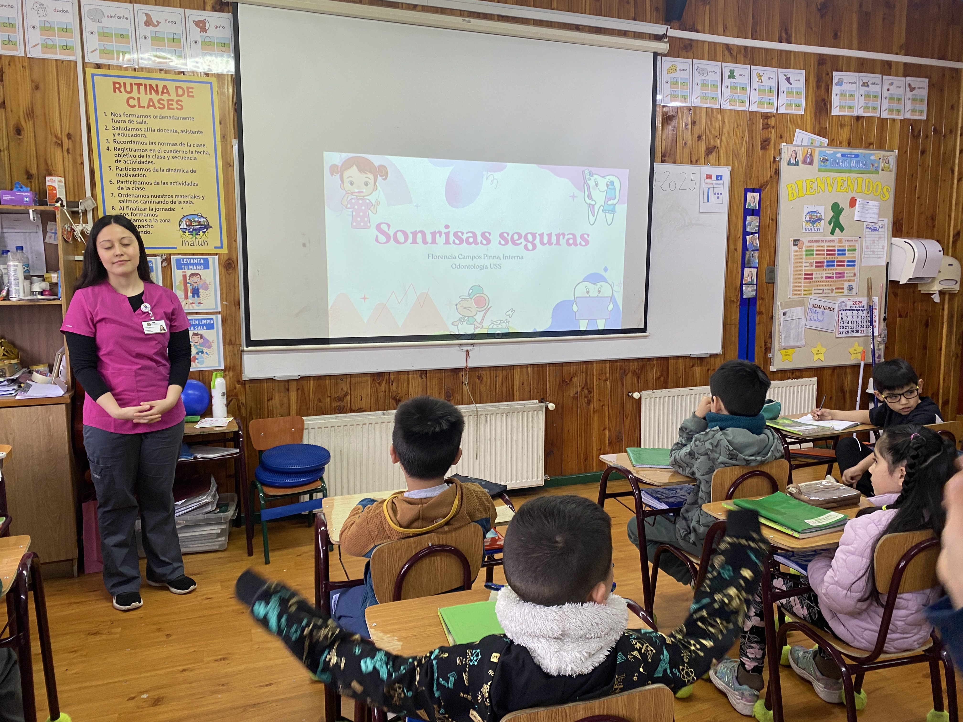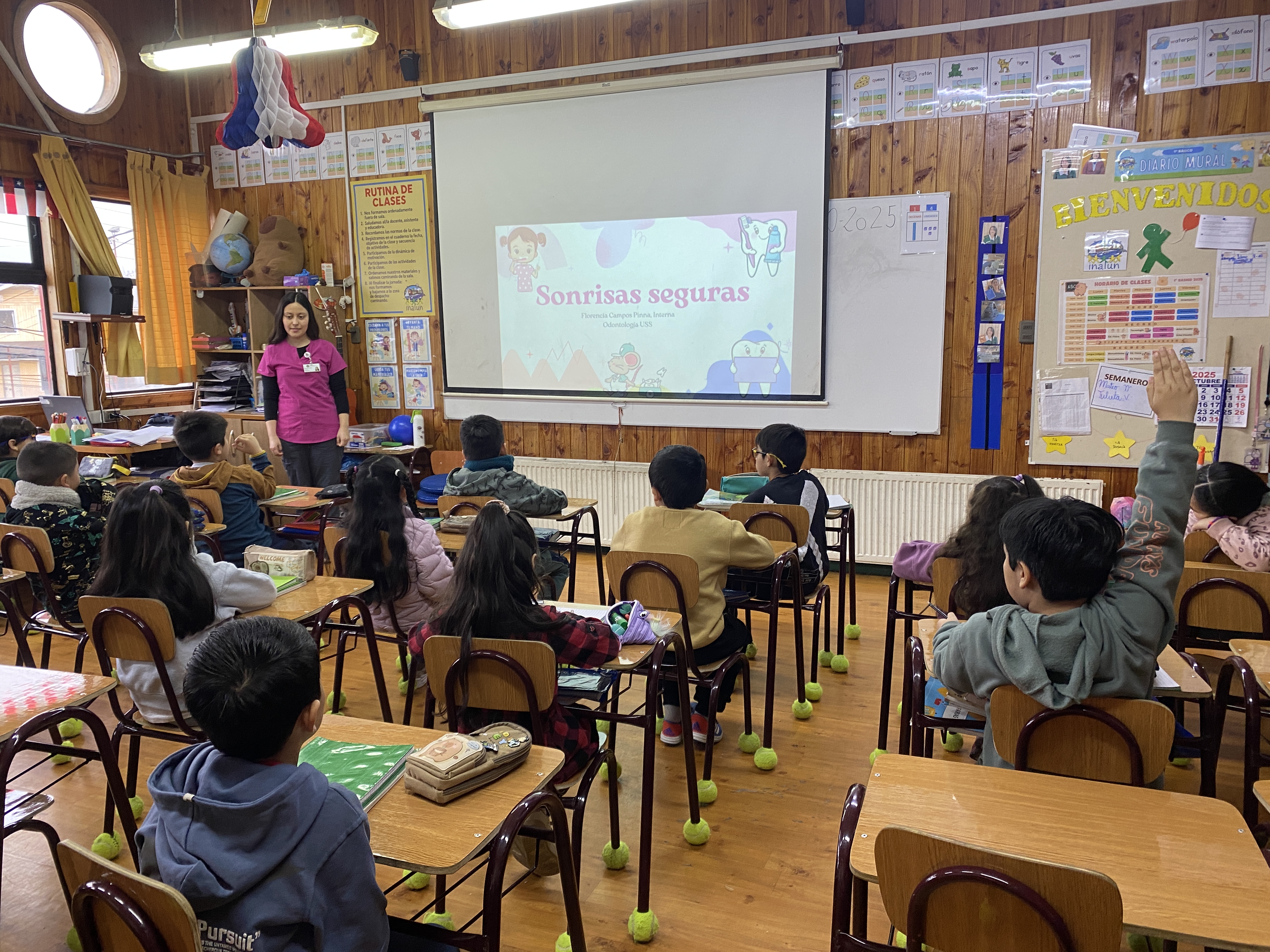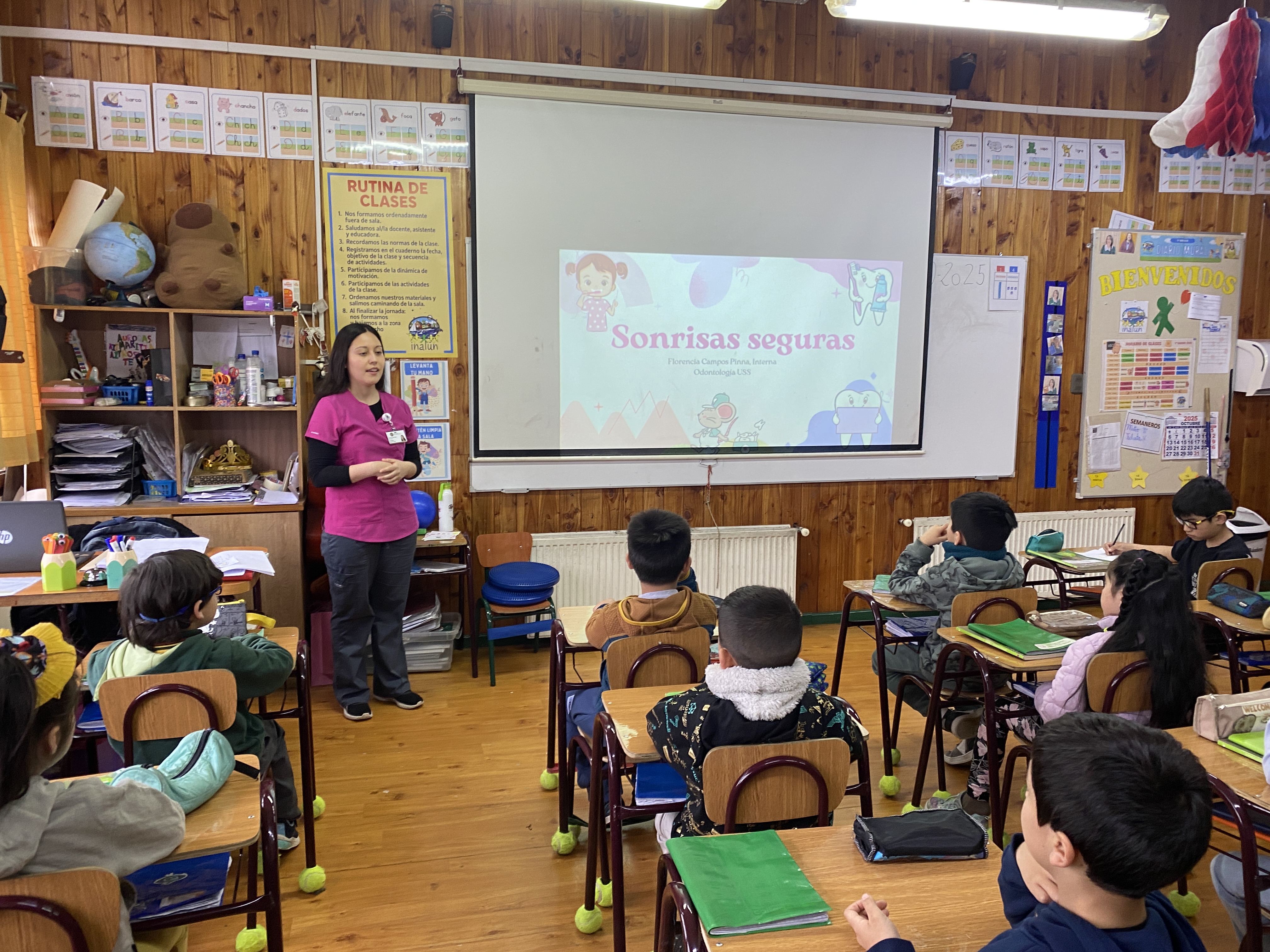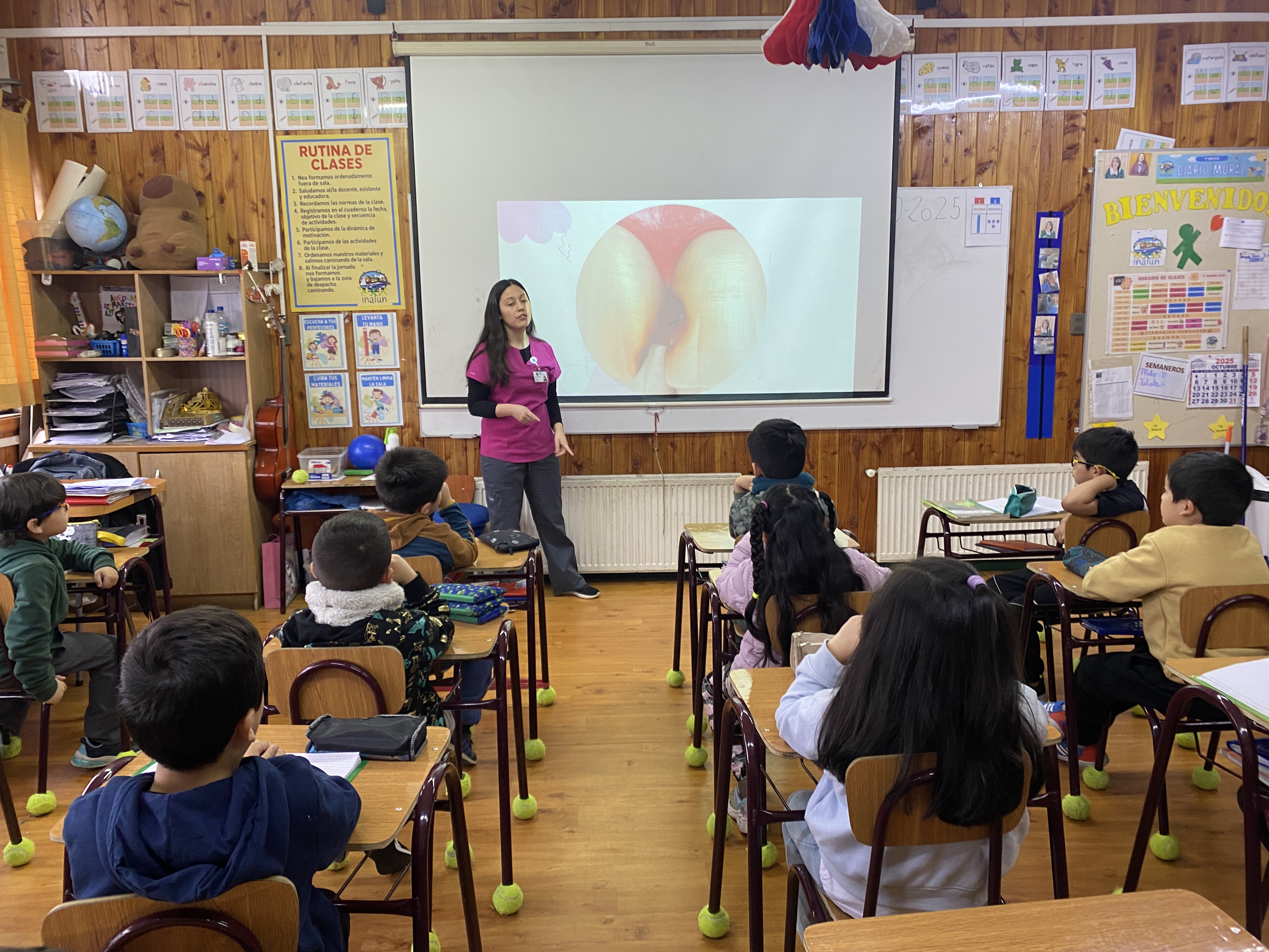 Nuestro colegio recibió la visita de funcionarios del CESFAM Dr. René Tapia Salgado, quienes realizarón un operativo preventivo dirigido a estudiantes de 1° y 2° básico, que incluyó una charla educativa sobre la enfermedad de caries, la importancia de los controles odontológicos y también la aplicación de pastillas reveladoras de placa bacteriana en 8 niños o niñas elegidos al azar. Dicho producto permite visualizar la placa bacteriana, favoreciendo su eliminación y la prevención de enfermedades bucales.