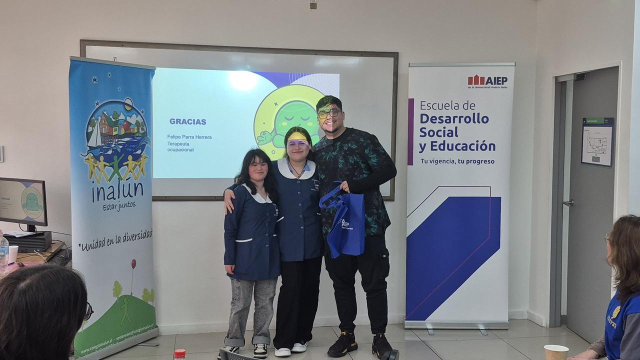 Durante el mes de octubre, el terapeuta ocupacional Felipe Parra Herrera, representante del Colegio Inalun, participó como expositor invitado en una instancia comunitaria organizada por estudiantes de Psicopedagogía del Instituto AIEP, en colaboración con la Dirección de Desarrollo Comunitario (DIDECO) de la Municipalidad.