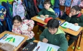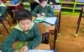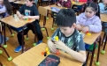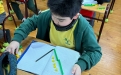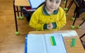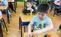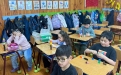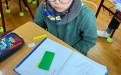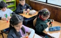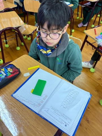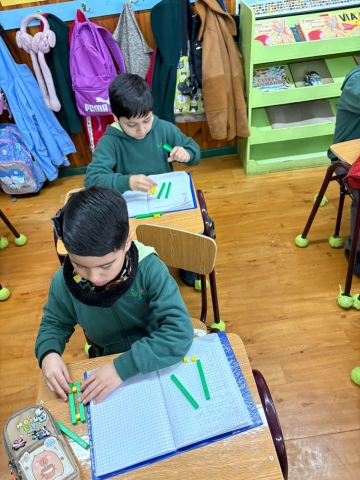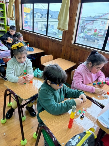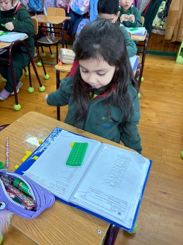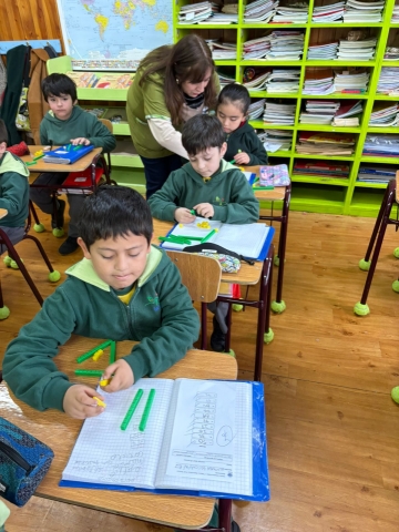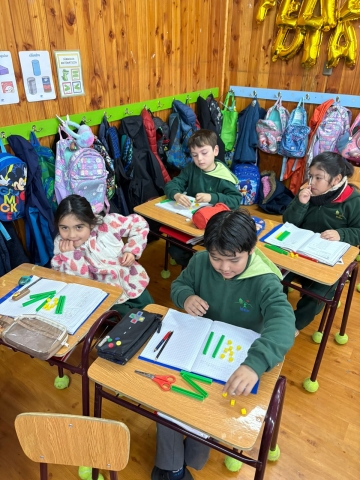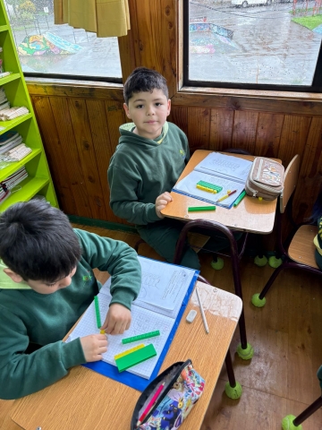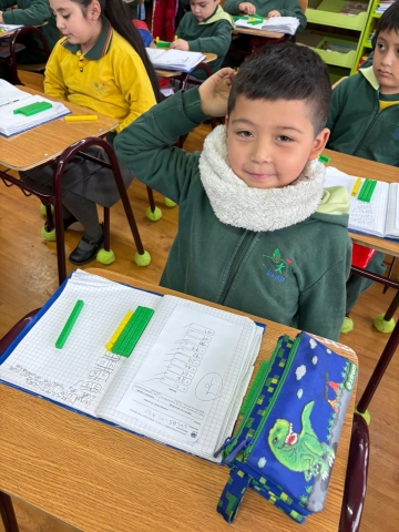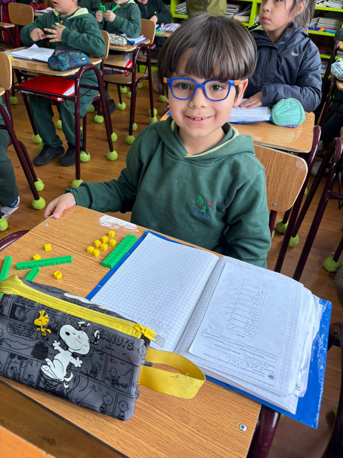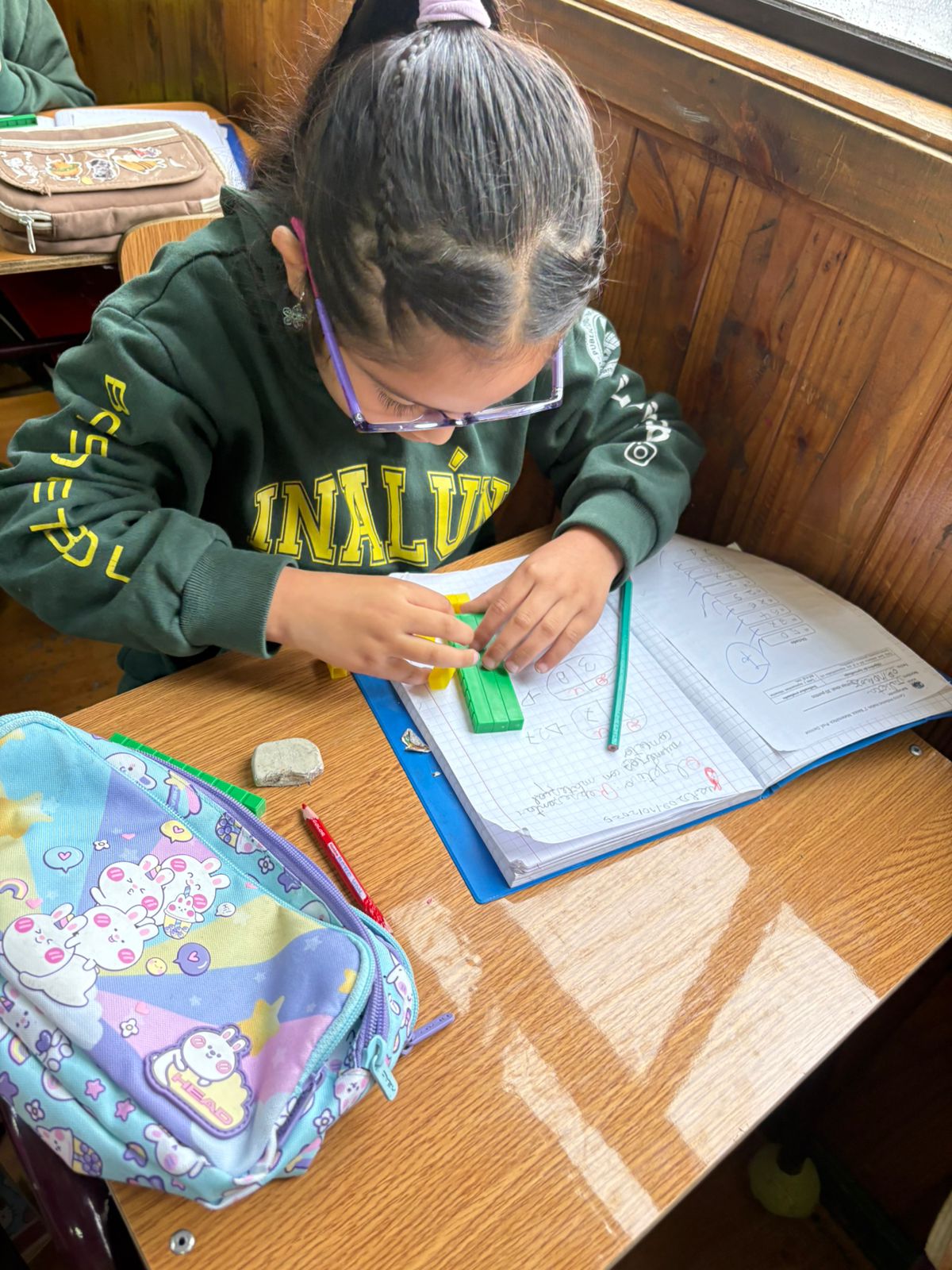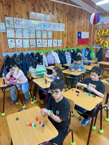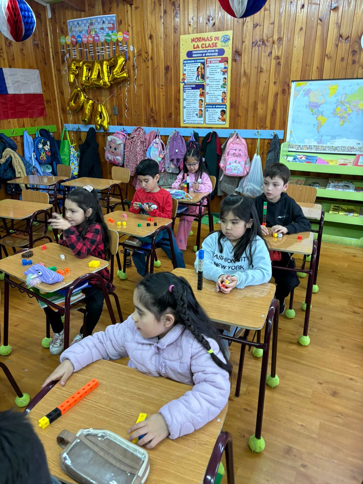 Estudiantes de primero básico utilizan los "Cubos unifix" y los "Bloques de base 10" en clases de matemáticas a cargo de la Profesora Denisse Bahamonde.