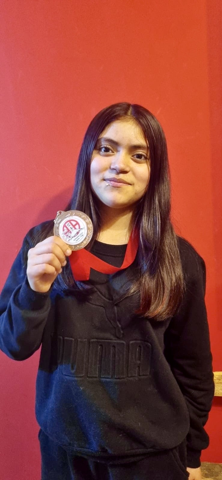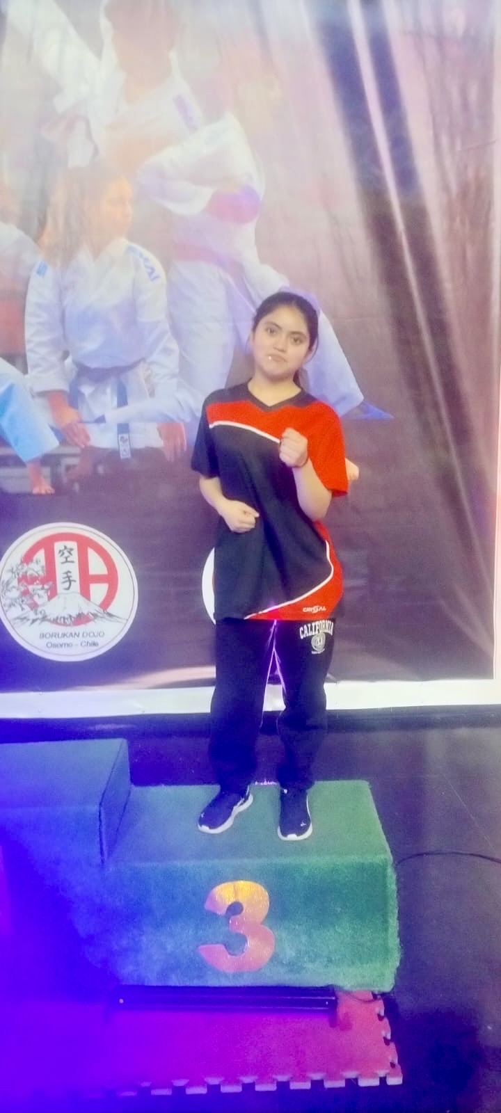 Felicitamos a nuestra estudiante de octavo básico Rocío Vargas por su destacada participación en el Torneo de Karate "zona Sur" perteneciente a la Federación de Karate Chile, obteniendo el tercer lugar y clasificando a los nacionales 2026.