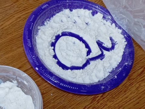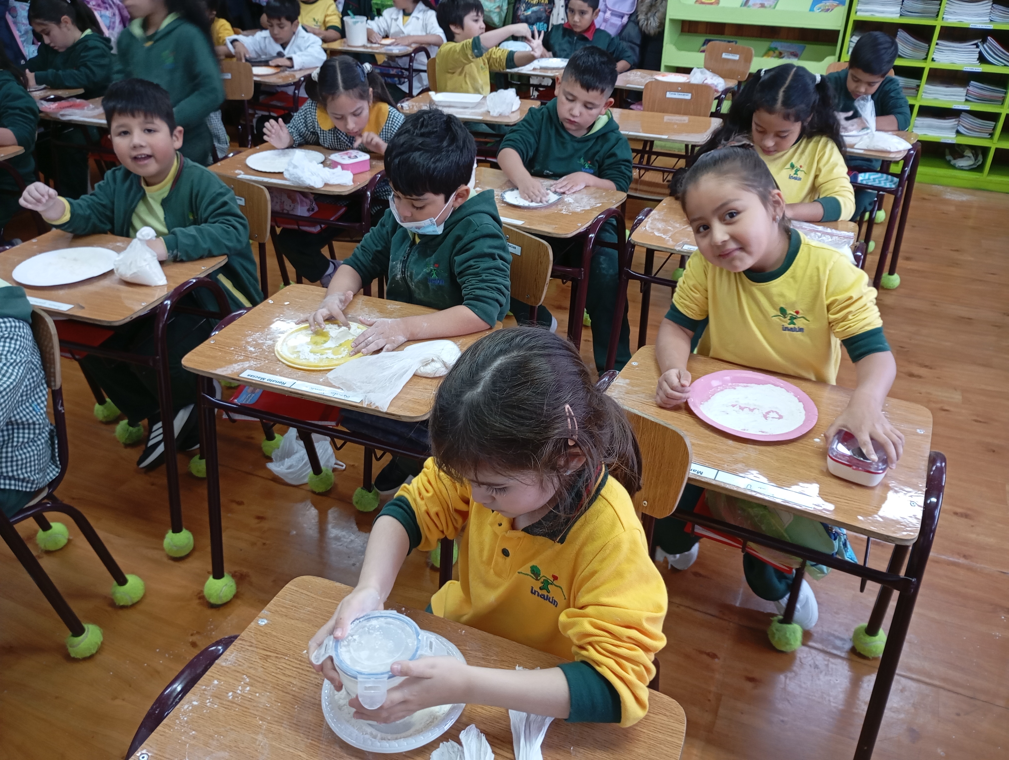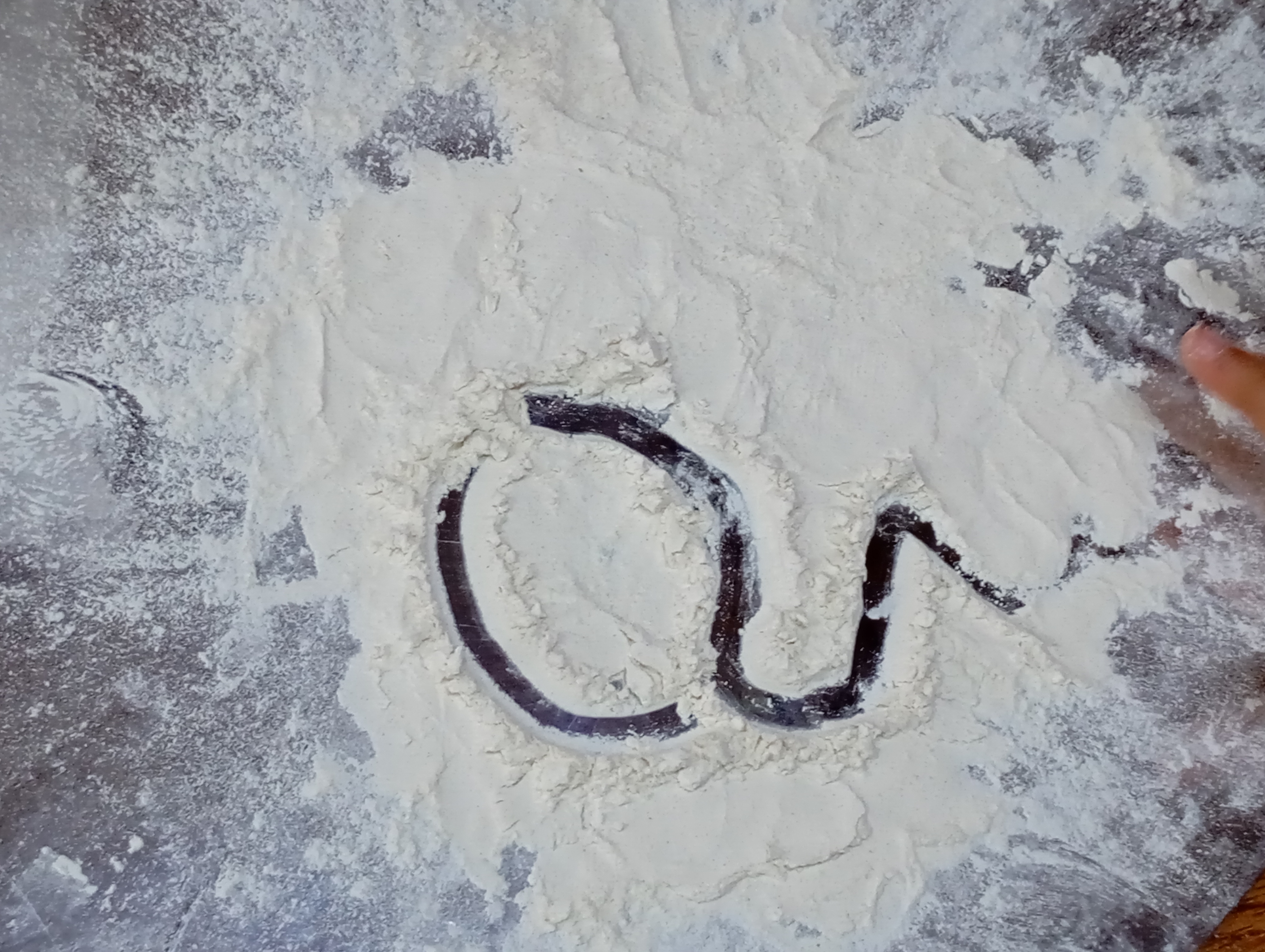 La harina se convierte así en una herramienta simple pero poderosa, que estimula la motricidad fina, la coordinación y la expresión, sentando las bases para el desarrollo de la escritura de manera natural y lúdica.
