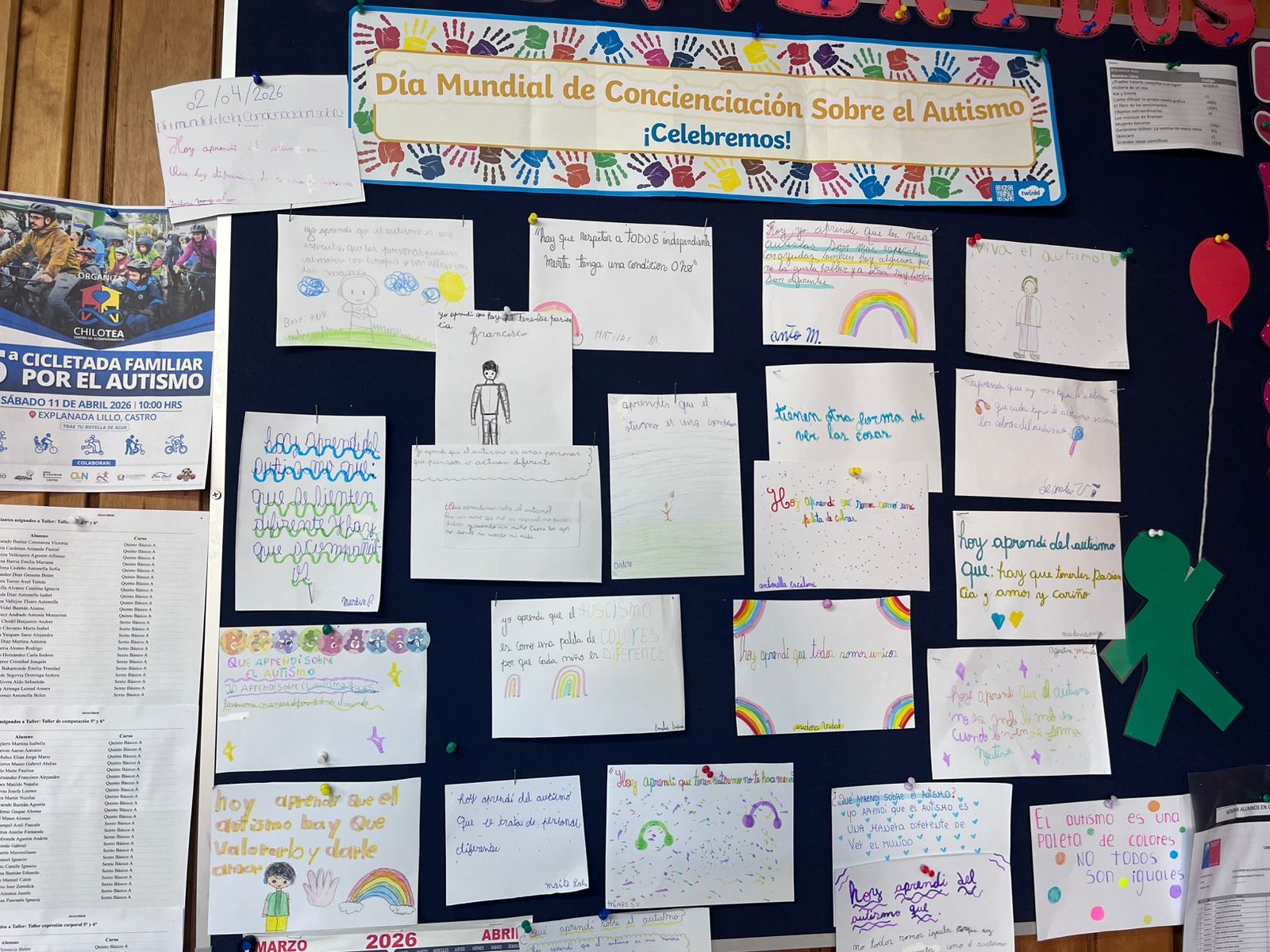 Durante la jornada, se realizaron intervenciones en los recreos y actividades dentro del aula, generando espacios de reflexión junto a los estudiantes. Estas instancias permitieron dialogar sobre la importancia de comprender, respetar y apoyar a las personas dentro del espectro autista.