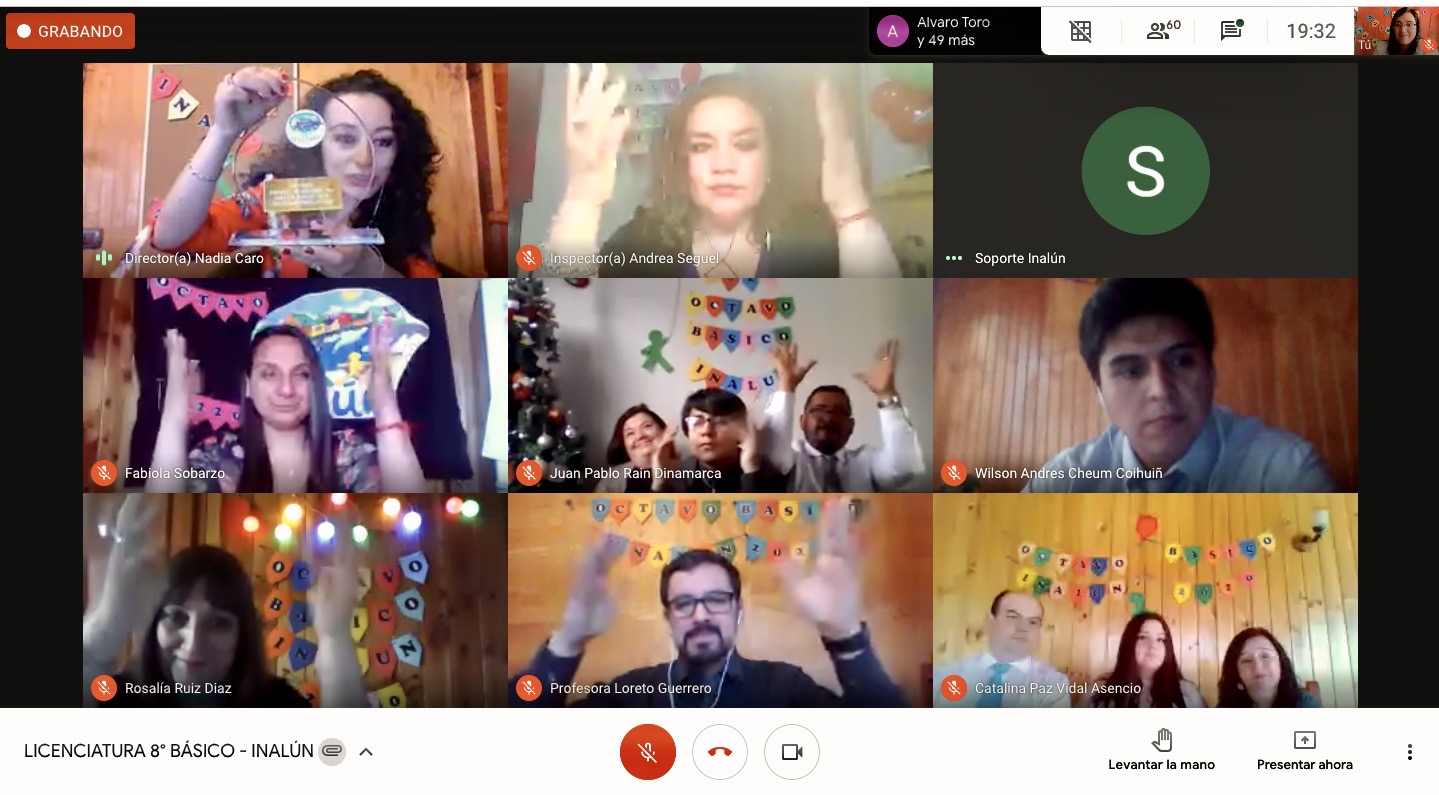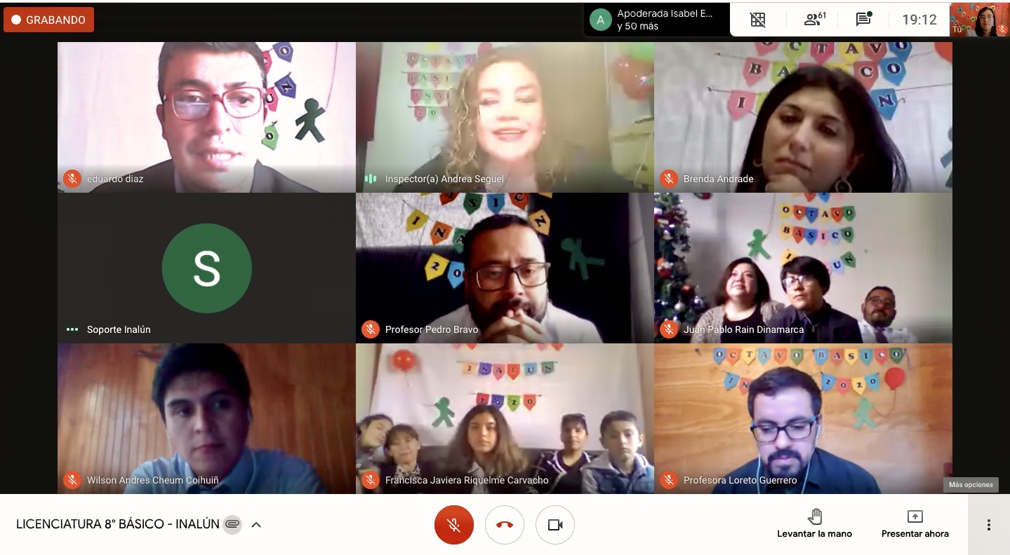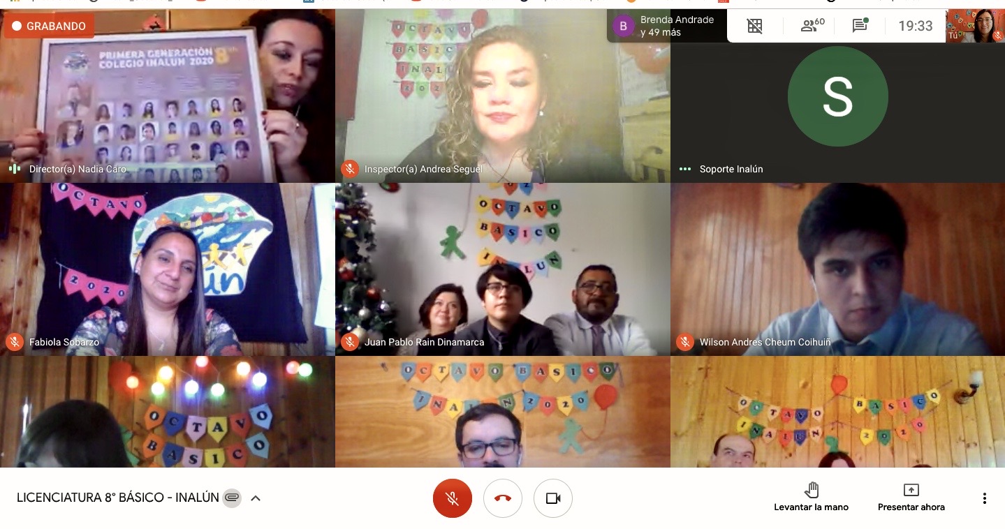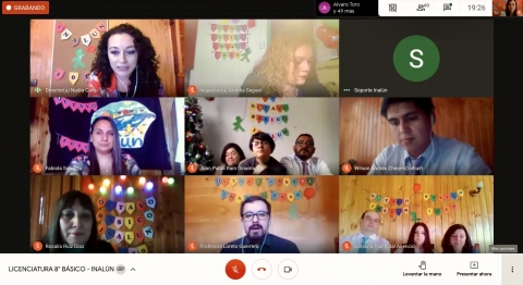 En dicha ceremonia virtual se despidio a nuestro primer octavo basico a cargo del profesor Pedro Bravo y su asistente tia Brenda Andrade, realizando una emotiva ceremonia de Licenciatura virtual, que contó la presencia de directivos, profesores y familiares.