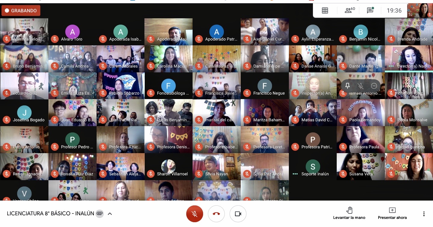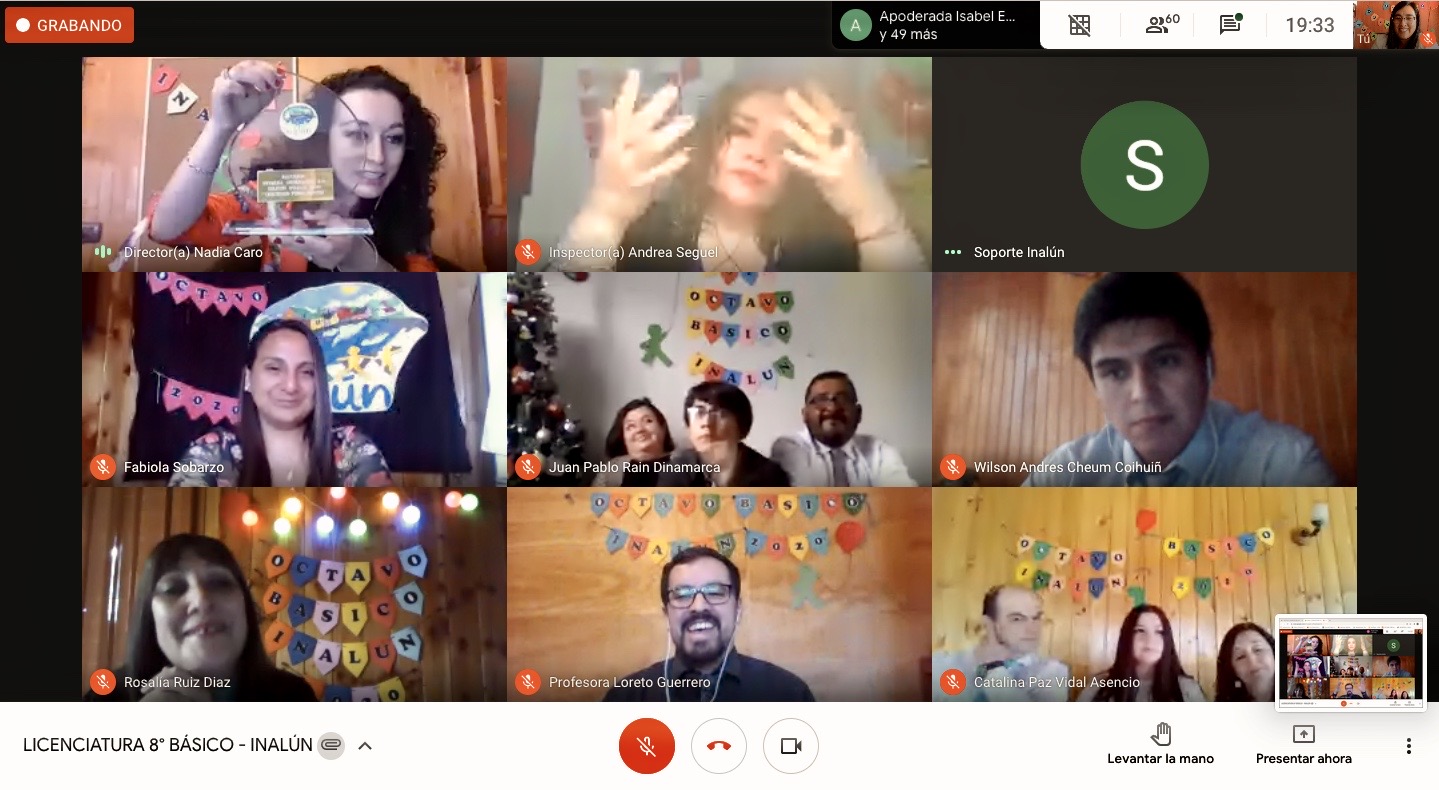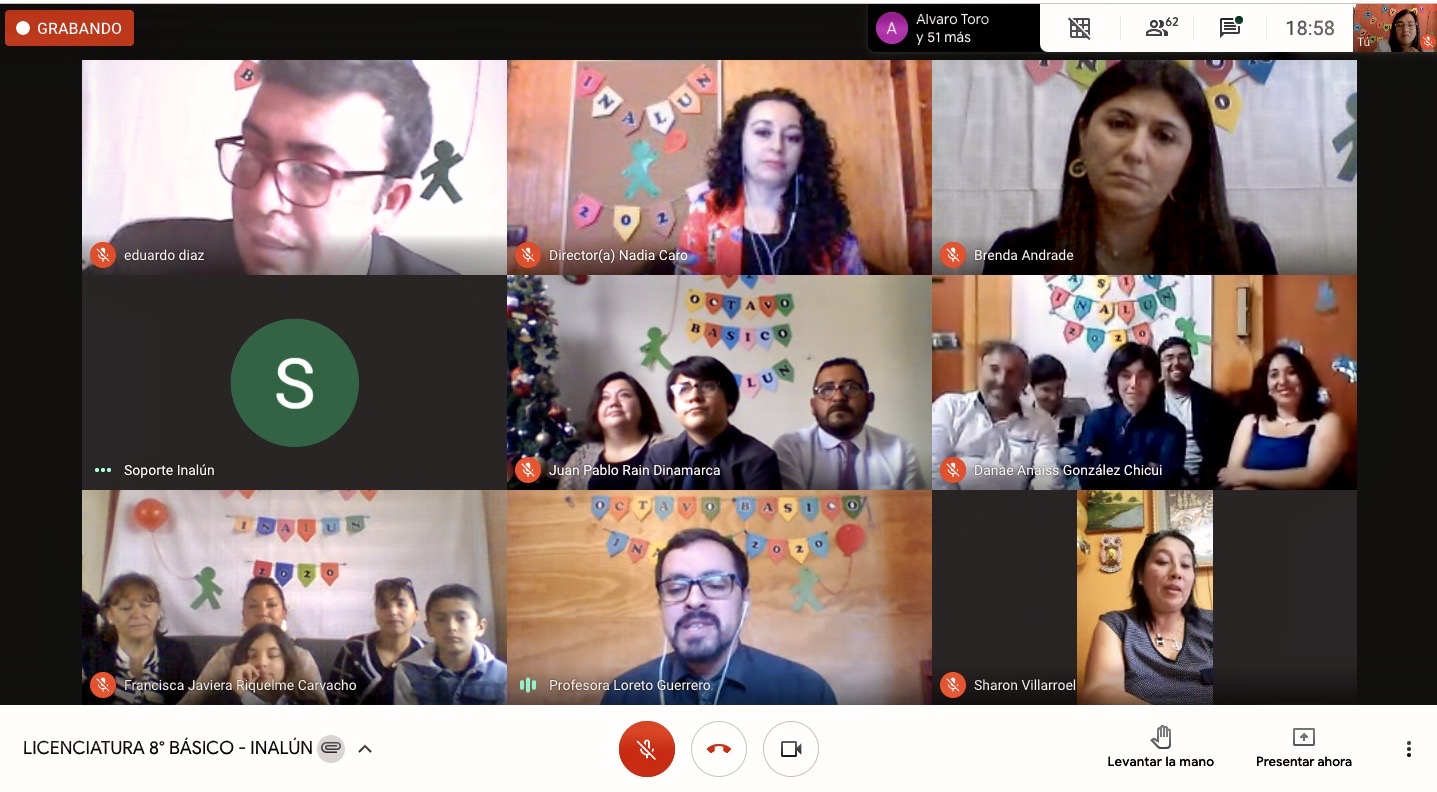 En dicha ceremonia virtual se despidio a nuestro primer octavo basico a cargo del profesor Pedro Bravo y su asistente tia Brenda Andrade, realizando una emotiva ceremonia de Licenciatura virtual, que contó la presencia de directivos, profesores y familiares.