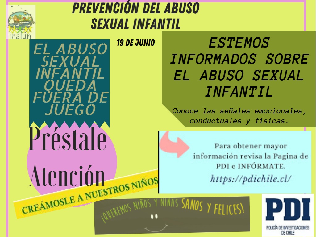 El 19 de junio es el dia mundial contra el abuso sexual infantil por lo cual como comunidad educativa los invitamos a informarse y conversar al respecto.