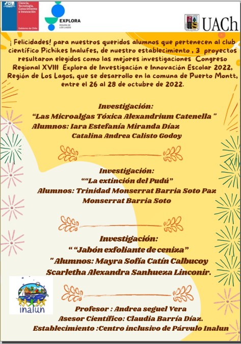 MEJORES INVESTIGACIONES CONGRESO REGIONAL XVIII Explora de Investigación e Innovación Escolar 2022