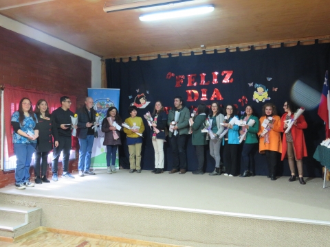 En el patio techado del colegio, Asistentes de la Educación, Gobierno Escolar, y la directiva del Centro de Padres y Apoderados prepararon un hermoso acto; en el que los profesores y profesoras compartieron con sus estudiantes en un muy festivo ambiente; con mucha alegría, sorpresas y muestras de agradecimientos, recibiendo regalos, presentaciones y mucho cariño de parte de sus estudiantes, así como también de los padres y apoderados.