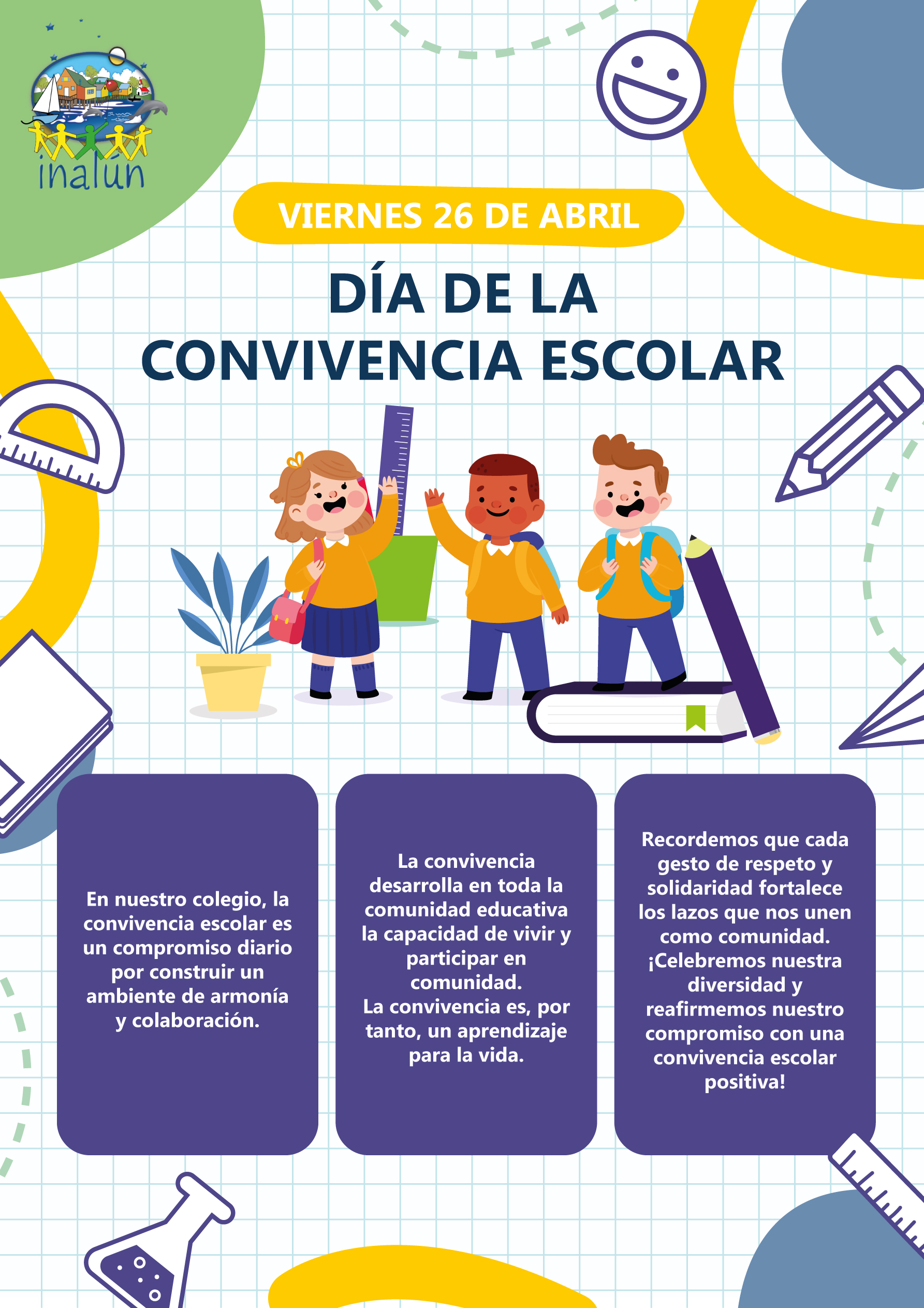 El 26 de abril, el Centro Inclusivo de Párvulos Inalún conmemora el Día de la Convivencia Escolar, una jornada dedicada a fomentar el respeto, la inclusión y la armonía entre estudiantes, profesores y toda la comunidad escolar. Esta conmemoración representa para nosotros una oportunidad de reforzar valores fundamentales y fortalecer las relaciones humanas en nuestro colegio.