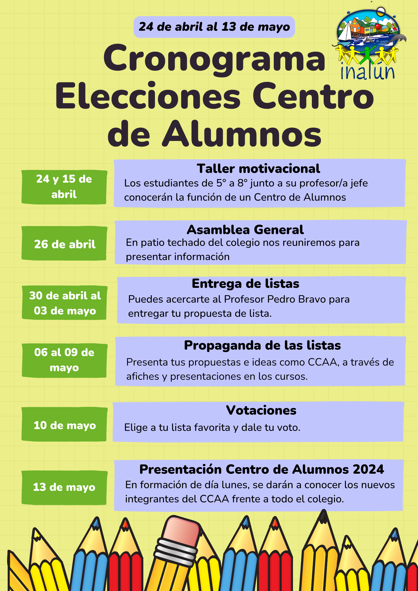 El viernes 10 de abril, nuestro colegio vivió un día trascendental con el desarrollo de las elecciones para el Centro de Estudiantes del año 2024. Esta jornada, marcada por la participación activa de estudiantes desde quinto a octavo básico, demostró el compromiso y la energía de toda la comunidad estudiantil.