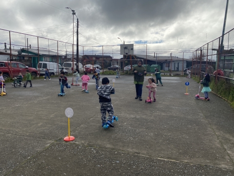 En el marco de esta convocatoria, nos encontramos desarrollando diversas actividades lectivas y extraprogramáticas, que apuntan a temáticas de educación vial, prevención de accidentes en la escuela, conductas preventivas y de autocuidado y cuidado del medio ambiente, lo que nuestros/as estudiantes han podido experimentar en diversos subsectores de aprendizaje durante toda la semana.