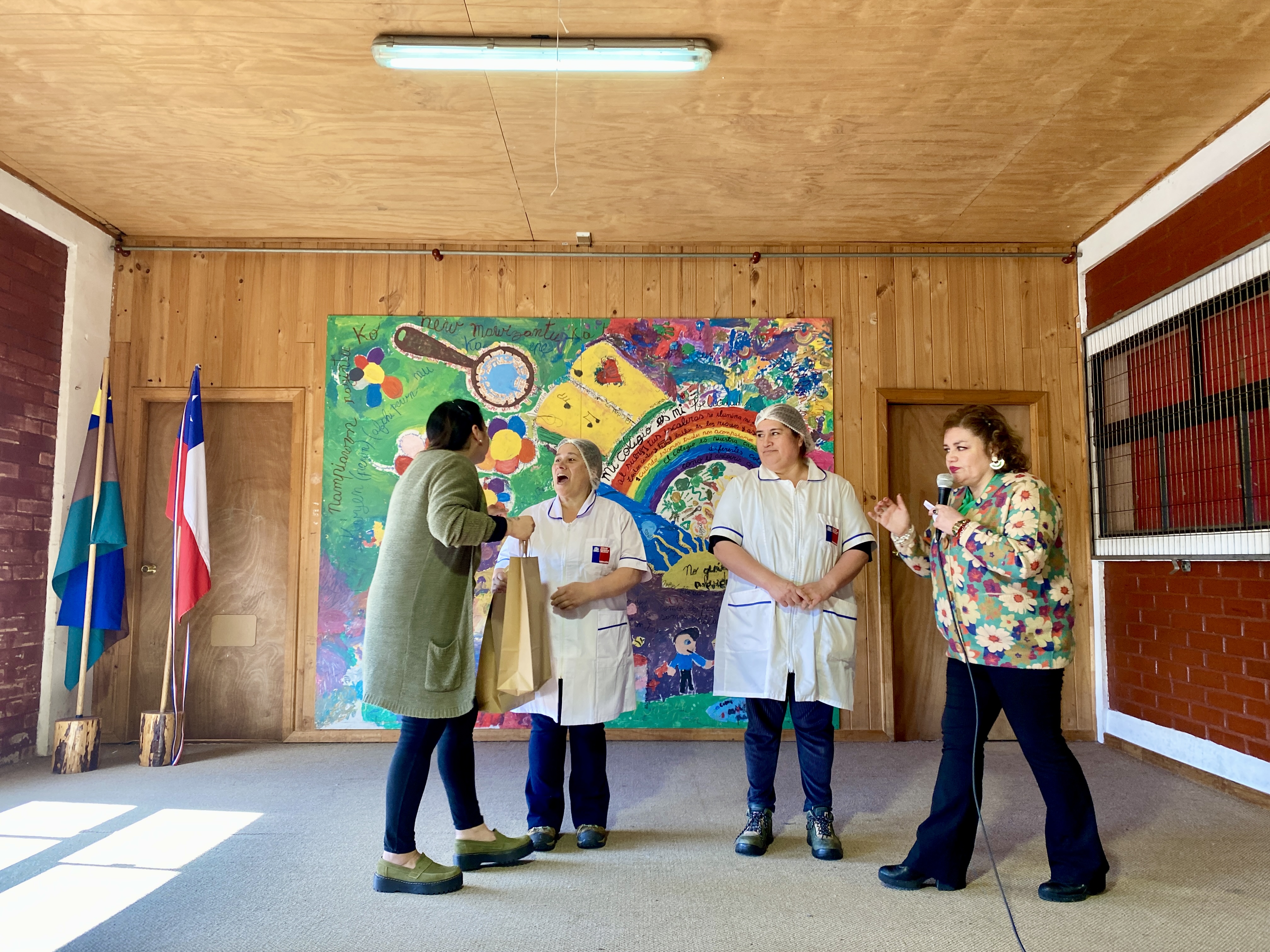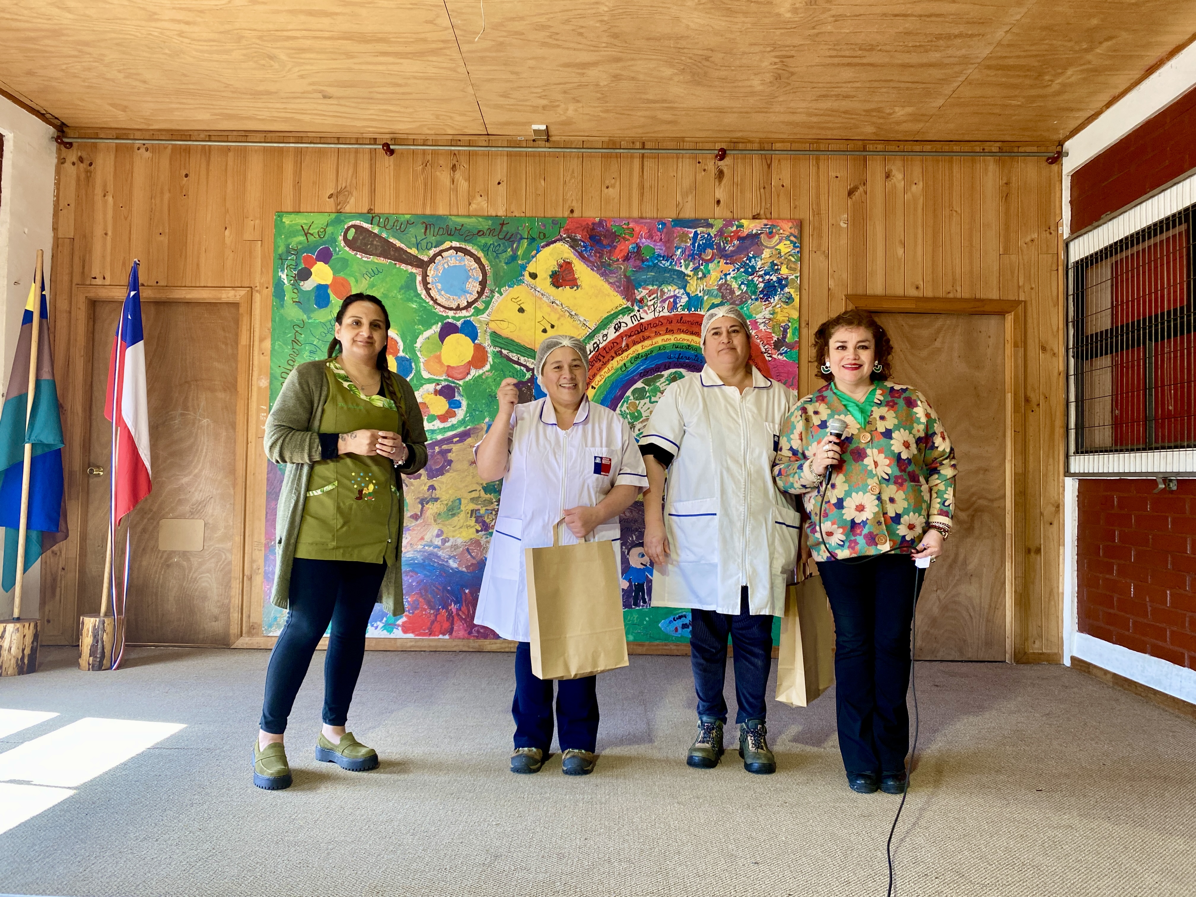 Durante el acto de los día lunes se hizo entrega de un reconocimiento a cada una de las manipuladoras de alimentos como muestra de gratitud y aprecio. La profesora Andrea Seguel , encargada del Programa de Alimentación Escolar JUNAEB, junto a Fabiola Sobarzo encargada de Bienestar fueron las encargadas de entregar los obsequios en representación de toda la comunidad Inalun.