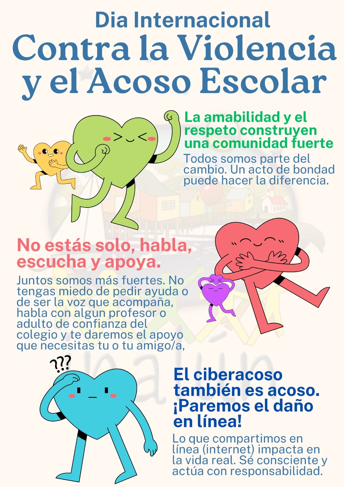 El Día Internacional contra la Violencia y el Acoso Escolar, incluido el ciberacoso, nos recuerda la importancia de fomentar un entorno educativo seguro y respetuoso para todos los estudiantes. En el Centro Inclusivo de Párvulos Inalún, promovemos valores como la empatía, la amabilidad y la inclusión, esenciales para erradicar el acoso en todas sus formas. Sabemos que la violencia y el acoso pueden afectar profundamente el bienestar emocional y académico de los niños y adolescentes, por lo que invitamos a todos los miembros de la comunidad educativa a trabajar juntos para crear un ambiente de apoyo y cuidado mutuo. La participación de padres, educadores y estudiantes es fundamental para prevenir y abordar estos problemas. Animamos a los apoderados a dialogar abiertamente con sus hijos sobre el respeto y el uso responsable de la tecnología, y a los estudiantes a hablar con confianza si necesitan ayuda o ven a alguien en peligro. Nuestro compromiso es que cada estudiante se sienta seguro y valorado, y para lograrlo, la colaboración de todos es esencial.