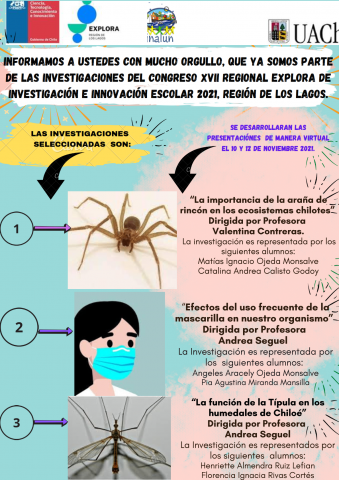 Submitted by Administrador on Lun, 10/25/2021 - 08:58Investigaciones del congreso XVII regional explora investigación e innovación escolar 2021, región de los lagos.